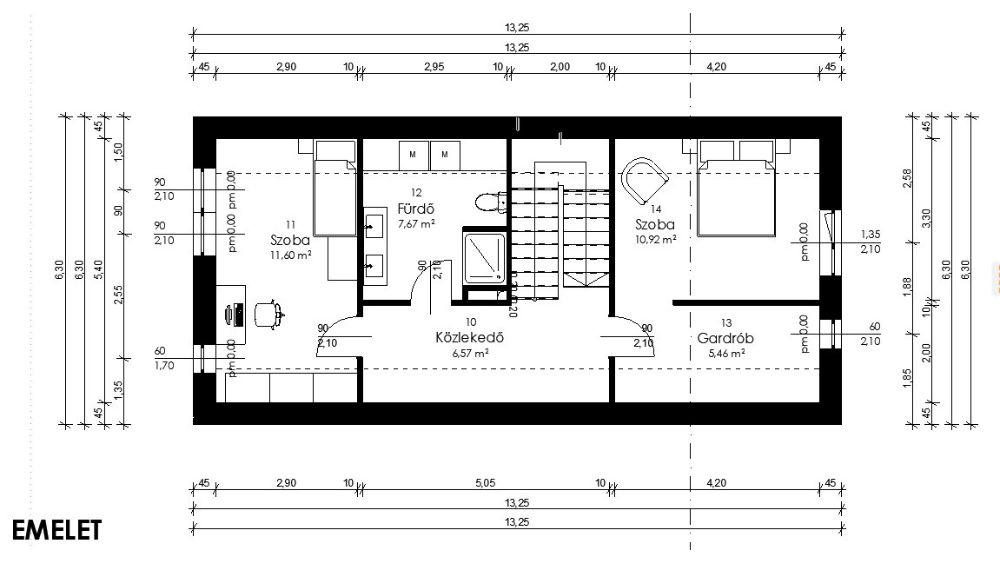 - A födémszerkezet vasbeton gerendával kerámia béléstesttel készül. Igény esetén monolit födém is kérhető.