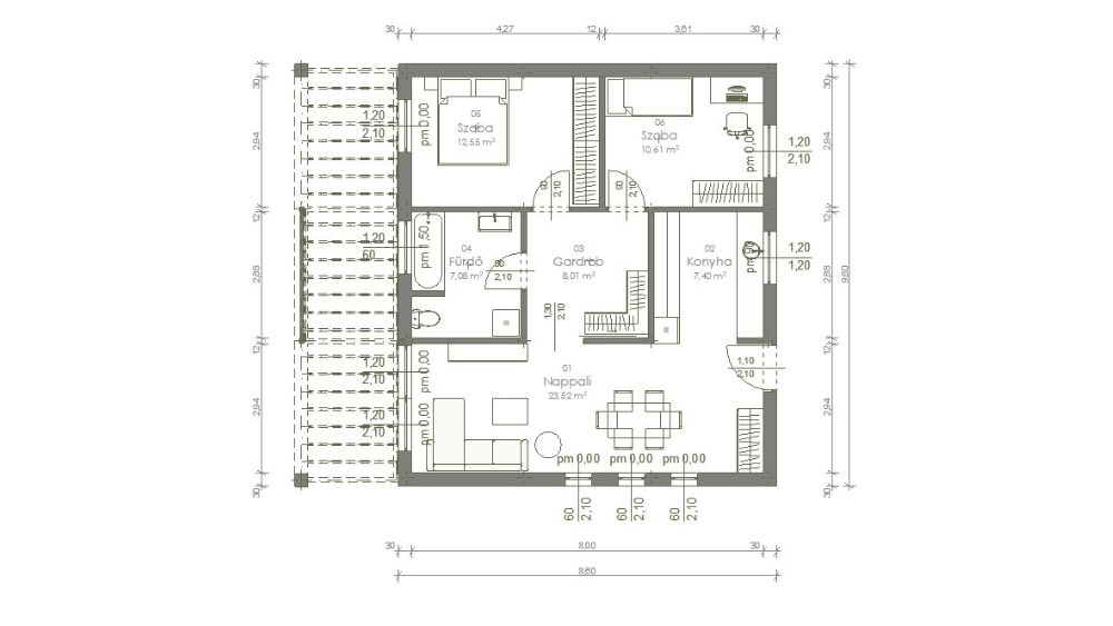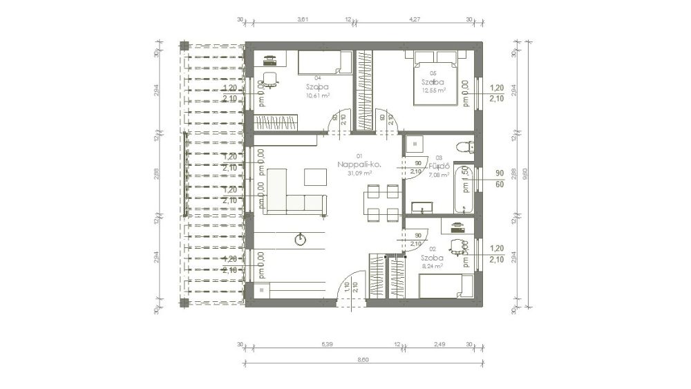Ideális otthon kisebb családok és családalapítás előtt álló párok számára. Letisztult vonalvezetés és funkcionális elrendezés jellemzi, miközben valódi báját éppen az egyszerűsége adja.