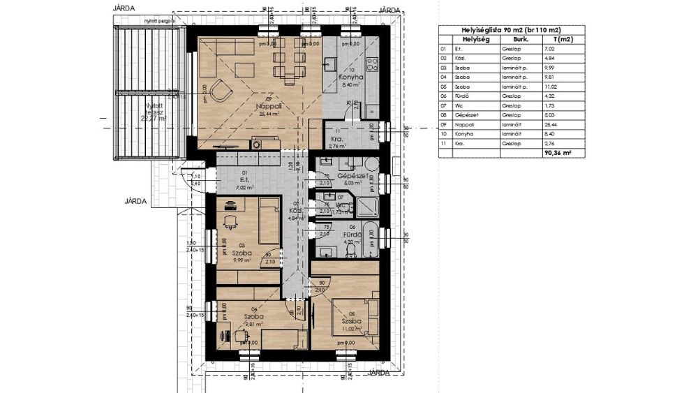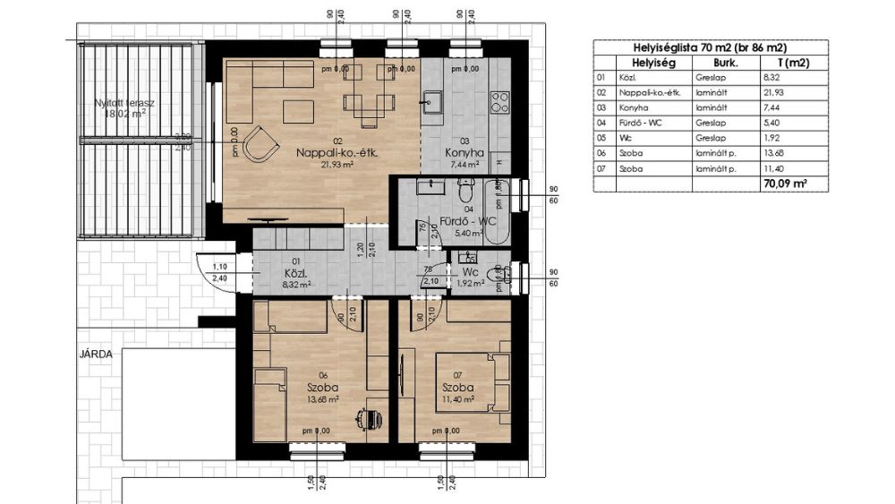 - Terasz térkővel burkolva (20m2) – az ár nem tartalmazza.