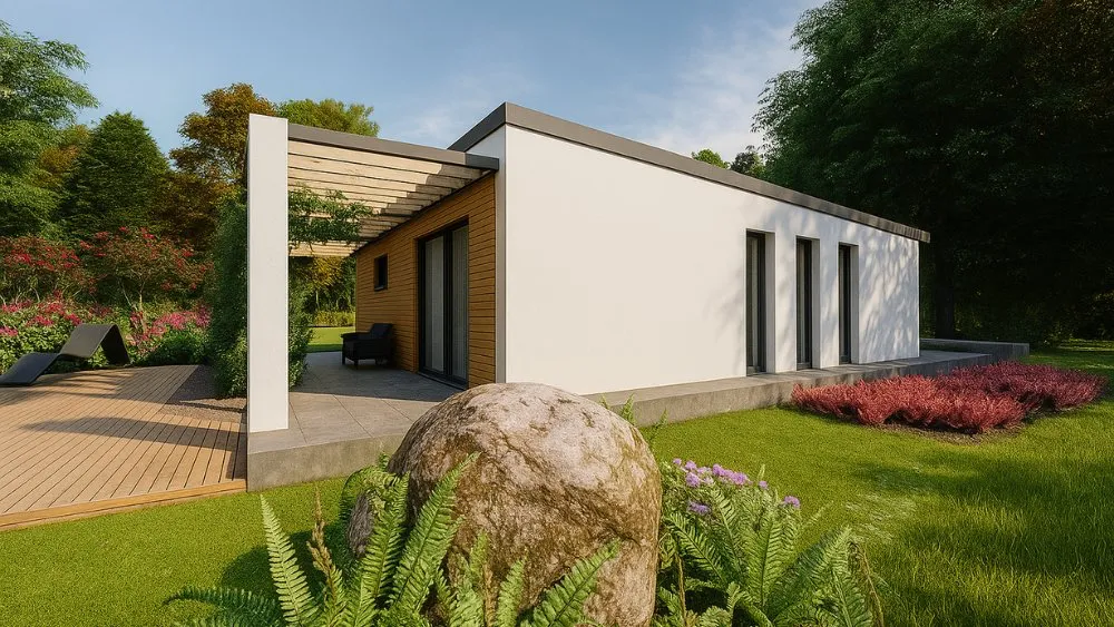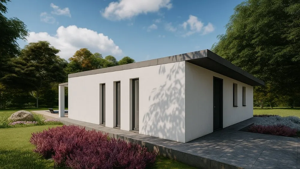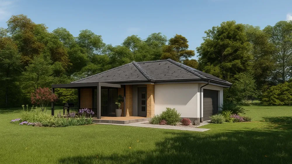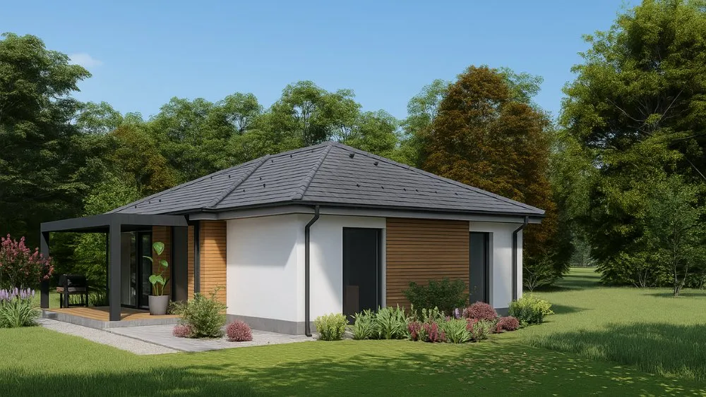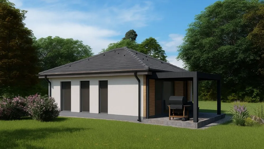Ez a barátságos és könnyen személyre szabható családi otthon acélvázas szerkezetének köszönhetően rendkívül stabil és időtálló. Igény szerint különböző méretekben és akár lapostetős kivitelben is megvalósítható, így teljes mértékben az egyéni elképzelésekhez igazítható. Kiváló választás lakóházként, nyaralóként vagy akár vendégházként is.
