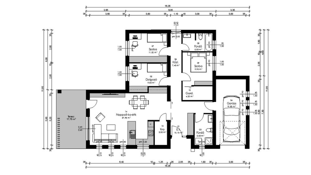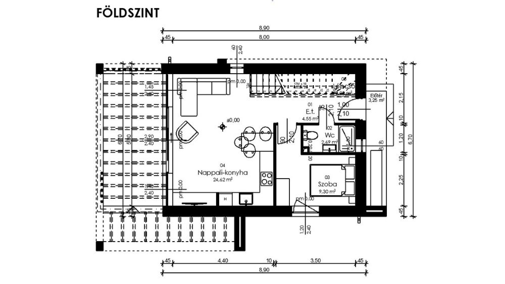 - Terasz térkővel burkolva (20m2) – az ár nem tartalmazza.