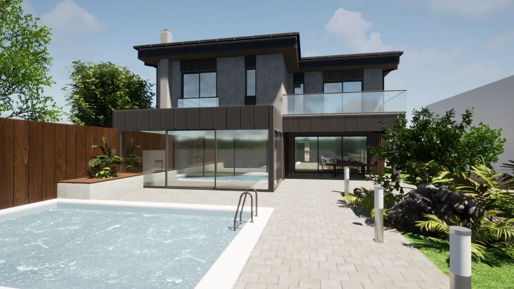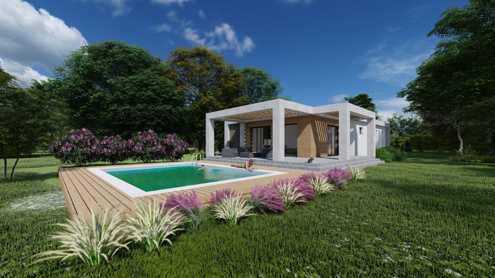 Lenyűgöző, lapostetős családi ház, ahol a prémium burkolatok, a tágas terasz és a medence valódi luxusélményt teremtenek. Ideális választás azok számára, akik egy hagyományos otthonnál többre vágynak.