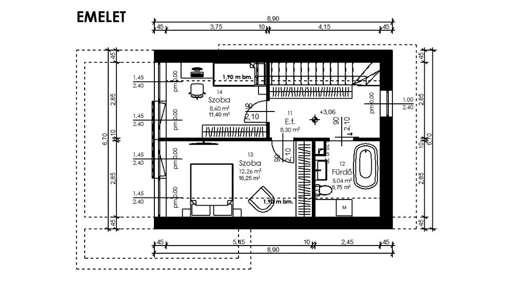- A födémszerkezet vasbeton gerendával kerámia béléstesttel készül. Igény esetén monolit födém is kérhető.